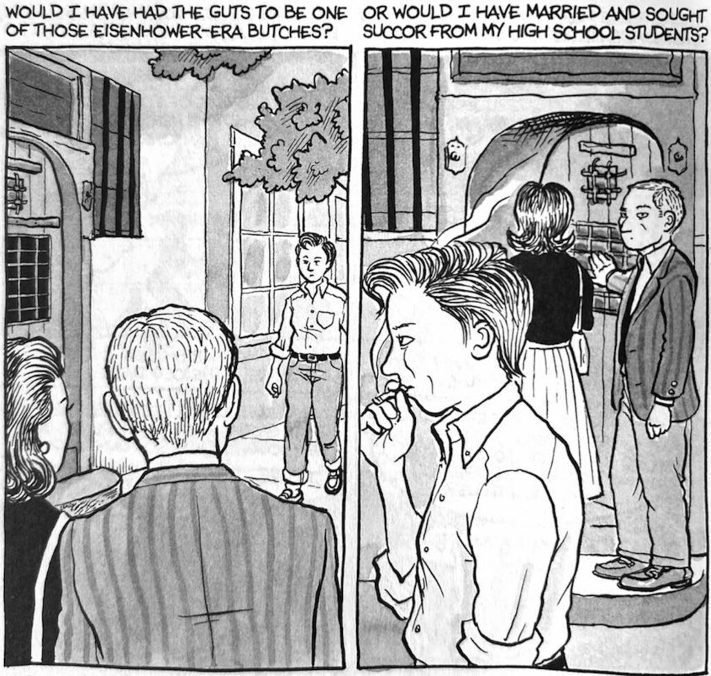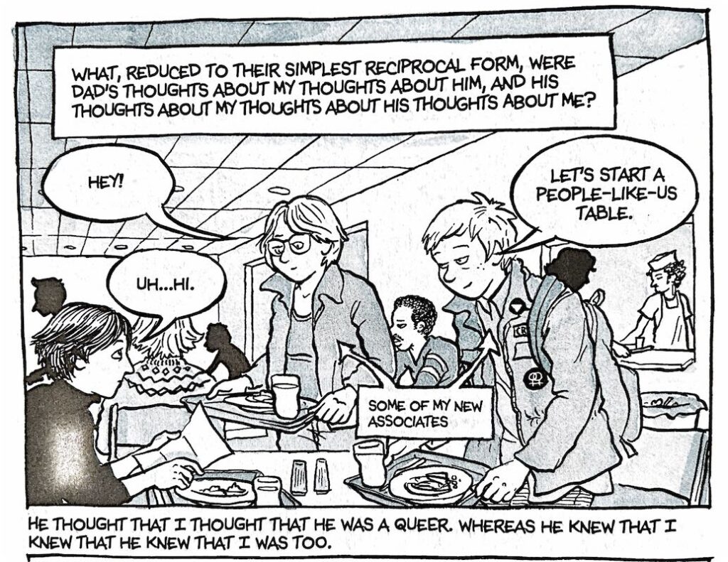At its core, Fun Home is a bildungsroman—charting Bechdel’s journey to understand her sexuality and identity. The wisdom she gains is not immediate; it is the result of years of introspection and a painstaking process of connecting disparate moments from her childhood and adolescence. Bechdel’s discovery of her lesbian identity is a pivotal moment in the memoir, yet it is not portrayed as a sudden epiphany. Instead, it unfolds gradually, as she pieces together her feelings, experiences, and the cultural texts that resonate with her emerging sense of self.