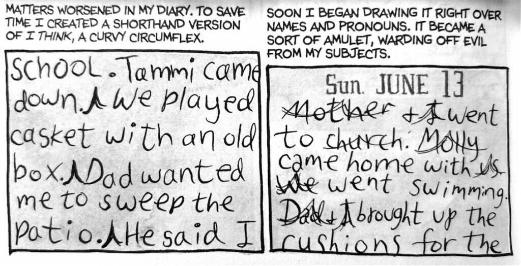 - Is Perplexity correct in seeing intellectual humility in the young Alison’s obsessive erasure of facts in her diary entries—first with the phrase “I think,” then by striking the entries through with inverted Vs—largely on the basis of the narrator’s evoking an “epistemological crisis” and the line, “How did I know the things I was writing were absolutely, objectively true?” (Fun Home 141)?